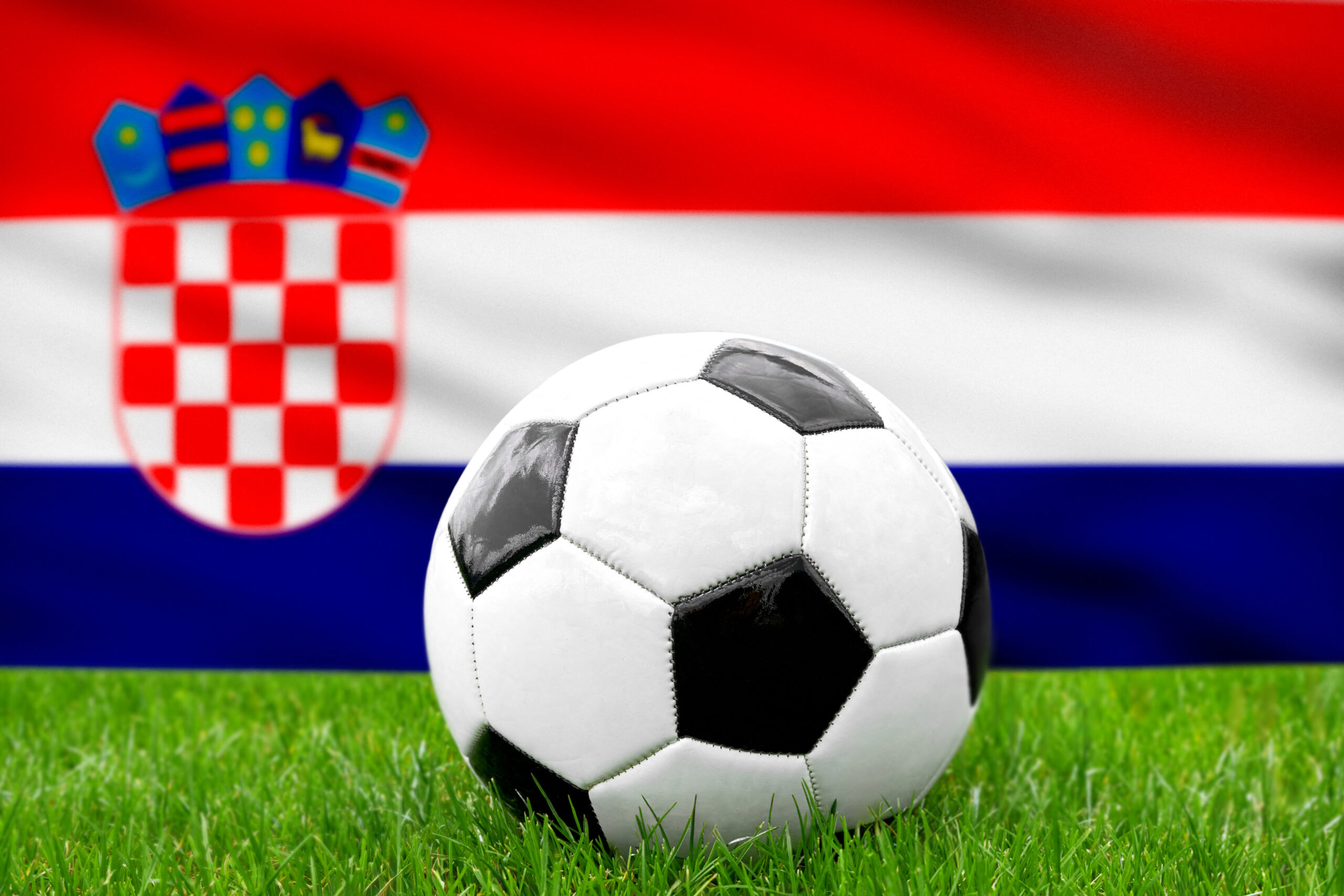 Fußball Kroatien – Ball vor kroatischer Flagge